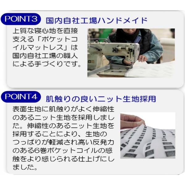 トップページ > 家具 > ベッド > 国産ピロートップ ポケットコイル 平行配列 ピアノ線6巻 1.9mm