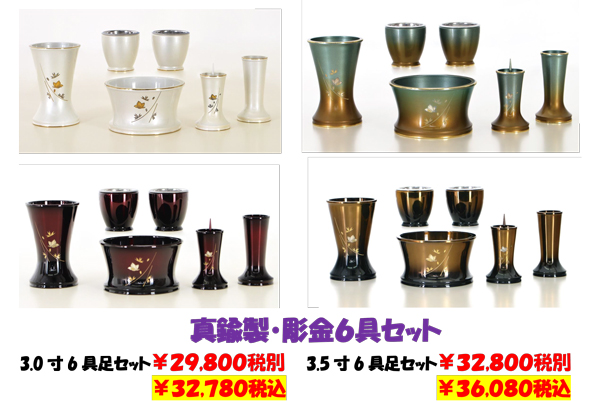 トップページ仏具仏具 > 真鍮製・彫金・家具調仏具6具セットグリーンぼかし